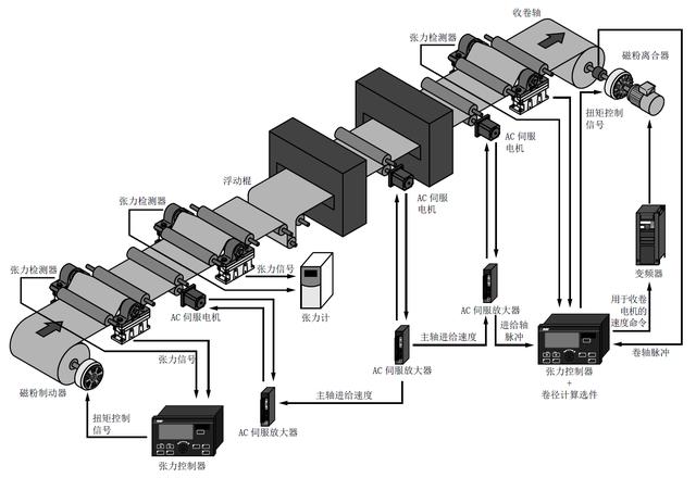 放卷部張力由設置在放卷部的磁粉制動器的制動器扭矩決定。為了保持一定的張力,需要在卷徑減小的同時減小制動器扭矩。