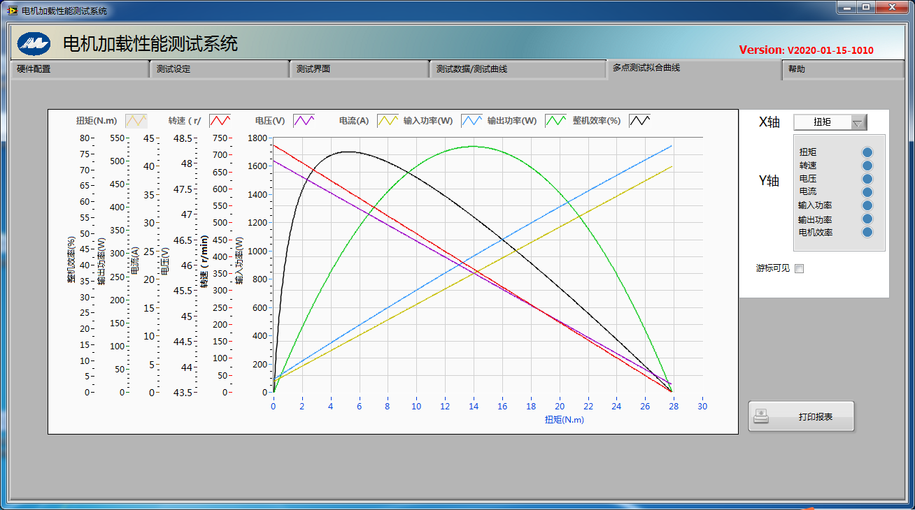 深圳某汽車制造廠定制的水泵電機(jī)綜合性能測(cè)試系統(tǒng)C0-MTHD284BYD是一套用于測(cè)試無刷電機(jī)的前端直流電壓、電流、轉(zhuǎn)速、轉(zhuǎn)矩、功率p1、p2、p3、效率,以及無刷電機(jī)驅(qū)動(dòng)器功率分析。測(cè)試結(jié)果匯總包含空載點(diǎn)、堵轉(zhuǎn)點(diǎn)、最大轉(zhuǎn)矩點(diǎn)、最大輸出點(diǎn),最大功率點(diǎn)、額定點(diǎn)(用戶自己定義轉(zhuǎn)矩),本套系統(tǒng)配有3個(gè)測(cè)功機(jī)(300mNm/3Nm/28Nm)且三個(gè)測(cè)功機(jī)之間可以通過轉(zhuǎn)換器與上位機(jī)控制實(shí)現(xiàn)自由轉(zhuǎn)換,通過PA2000mini 功率分析儀采集電機(jī)的扭矩轉(zhuǎn)速及驅(qū)動(dòng)器的輸入輸出電壓電流,軟件是根據(jù)客戶的需求進(jìn)行定制化開發(fā),整套系統(tǒng)交付客戶使用后獲得客戶的高度好評(píng)。